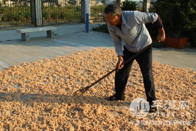步入村中广场,一片金黄扑面而来。数十个竹筛、竹网整齐铺开,密密匝匝的地瓜片在秋日柔和的阳光下,泛着蜜一般温润的光泽。六十多岁的陈阿姨一边用巧劲翻动着竹网上的地瓜干,一边和身旁的姐妹唠着家常:“今年天气好,地瓜甜度够,晒出来肯定抢手。”不远处,几位村民手持木耙,不紧不慢地翻动着晾晒的薯渣,从容中透着丰收时节特有的忙碌。