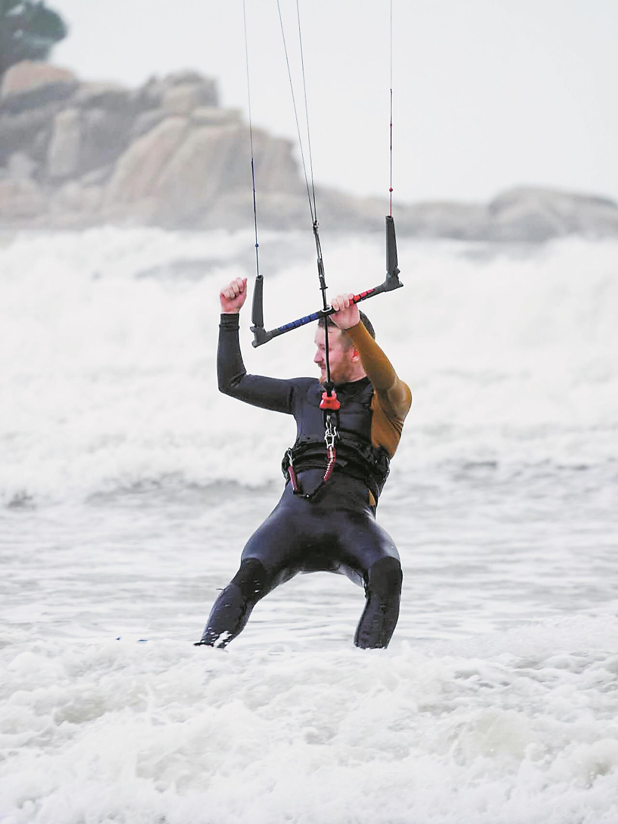 乔胡姆在龙王头附近海域玩风筝冲浪。(受访者供图)