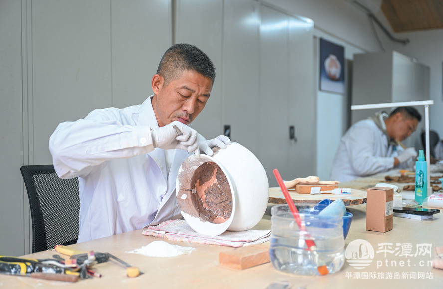 “陶片取自西营遗址,我们采用整体提取法,将含陶片的土块运回室内,再逐层清理、拼对、加固。”刘军祥介绍,从残片到成器,需经历10天至15天的精细作业。这件陶罐的“重生”,不仅是技术的复原,更是一段文明记忆的复苏——它见证了南岛语族先民在平潭的生存轨迹,为追溯其起源与扩散提供了关键物证。