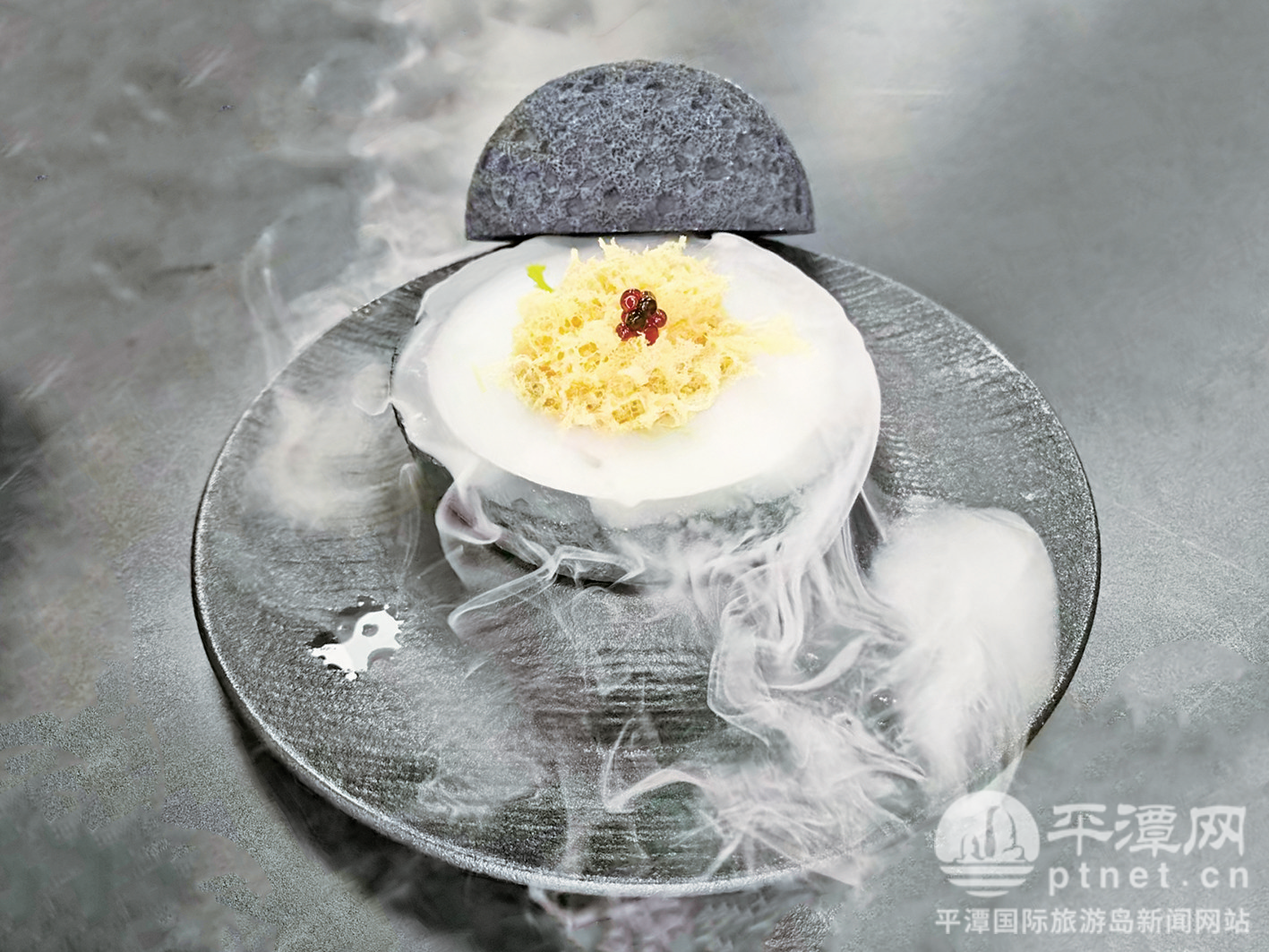谈起家乡味,姚森如数家珍:“我最爱平潭的海蛎、紫菜,还有鲍鱼。鲍鱼烧红烧肉是时间的风味,若和同样是国家农产品地理标志的平潭坛紫菜同炖,那是‘地标相会’,鲜上加鲜。”然而姚森最终选择的,不是家常菜的做法,而是一道工序繁复、技术至上的创意菜。对于像姚森这样新一代的厨师而言,他们深植于传统,却渴望以全新的语言,让故乡味道走向更远的舞台。