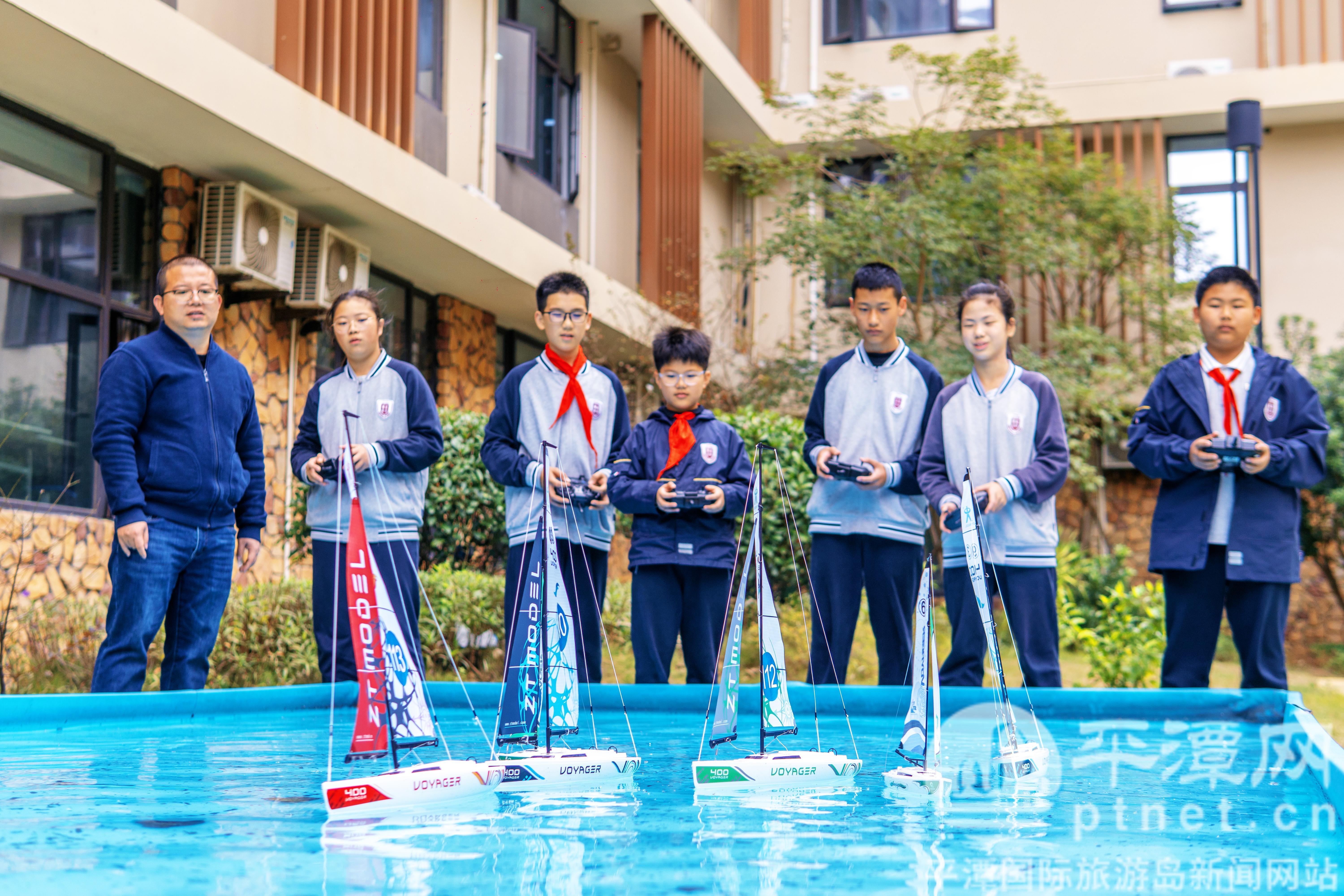 为系统推进遥控帆船运动的普及,学校构建起贯通小学至初中的完整课程体系,形成阶梯式人才培养模式。“每个学生都从理论学习起步,但课程设置会根据年龄段特点各有侧重。”林力介绍,小学阶段以遥控帆船项目为主,通过循序渐进的教学打牢基础;升入初中后,学生可参与“海陆空”综合选修课,在遥控帆船、遥控赛车等项目中深化实践,并将物理等学科知识灵活运用于操作中,为后续学习奠定坚实基础。