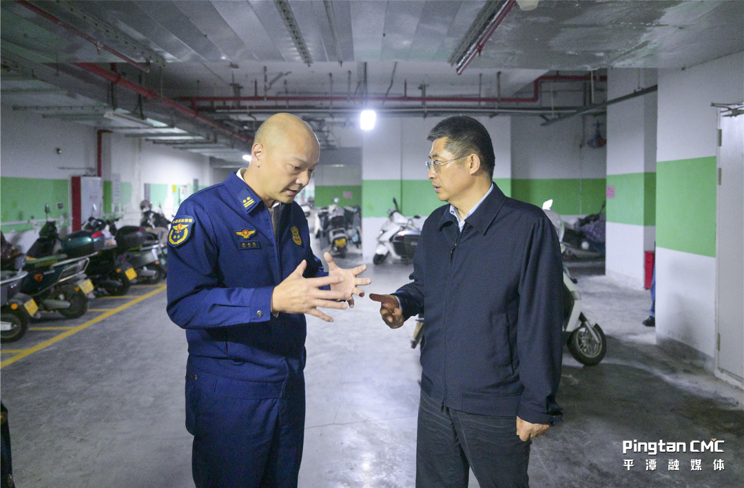 在岚湾正荣府小区,黄建波现场察看消防器材是否完好、常闭式防火门是否保持关闭、电动自行车是否存在违规停放和违规充电等情况,并对检查发现的隐患问题提出整改要求。他强调,要做好规划设计,在建设时合理布局电动自行车、新能源汽车、燃油车停车区域,进一步保障安全、方便居民。要加强日常管理,扎实开展高层建筑重大火灾风险隐患排查整治行动,持续增强物业人员履职能力,构建全方位安全防护网络。要强化宣传教育,广泛深入宣传安全知识,不断提高居民的安全意识和自我防范能力,形成人人有责、人人尽责的良好氛围。