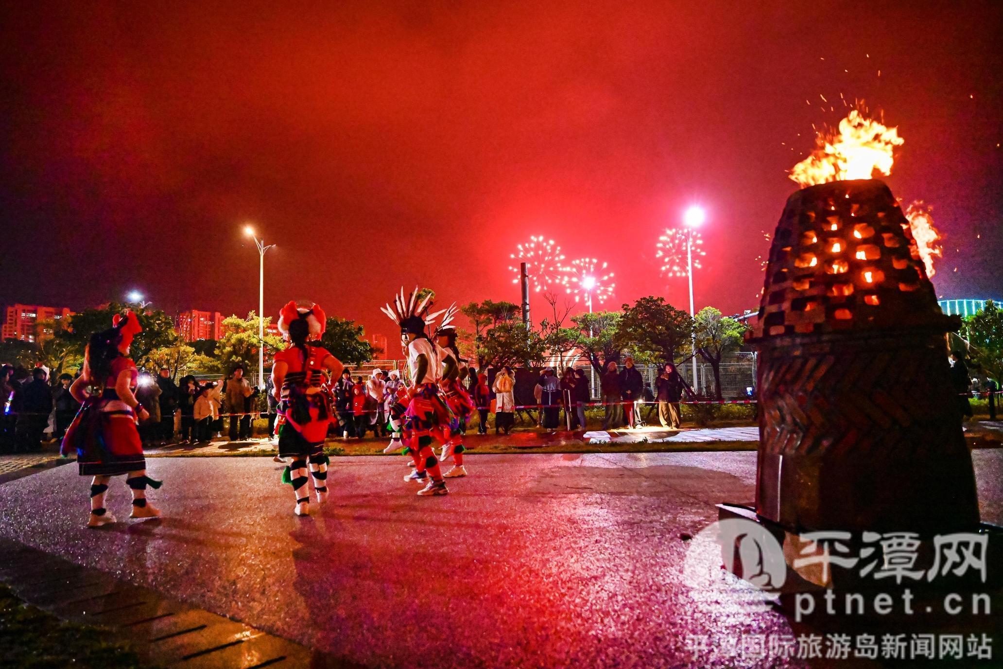 活动还融入了特色民俗表演,火舞表演中,焰光流转,划出炽热的轨迹;烧瓦塔环节,跃动的火焰映亮一张张笑脸,点燃人们对新年的期盼。更有来自台湾地区的舞者身着传统服饰、头戴面具,随鼓点起舞,尽显浓郁的文化风情。