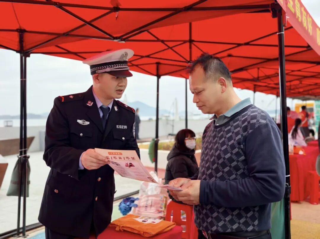 1月16日,平潭公安交警宣传人员在平潭2026年文化科技卫生“三下乡”活动现场设置咨询台,向群众发放印有交通安全知识的宣传单页,主动解答群众提出的各类交通问题,积极互动交流。