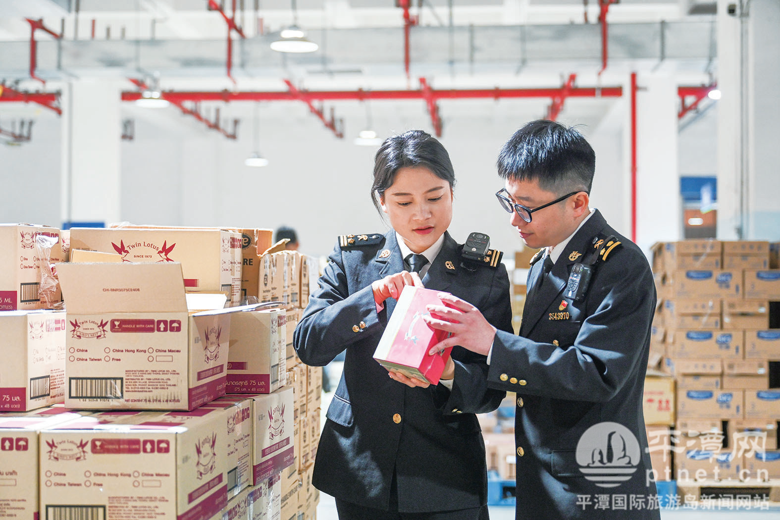 海关工作人员正在查验货物。