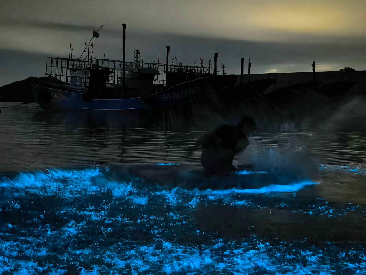 每年的3月至6月,入夜的平潭海边常常翻涌起荧光色的海浪,如星辰入海般唯美,吸引众多市民游客寻“泪”而来。康磊摄