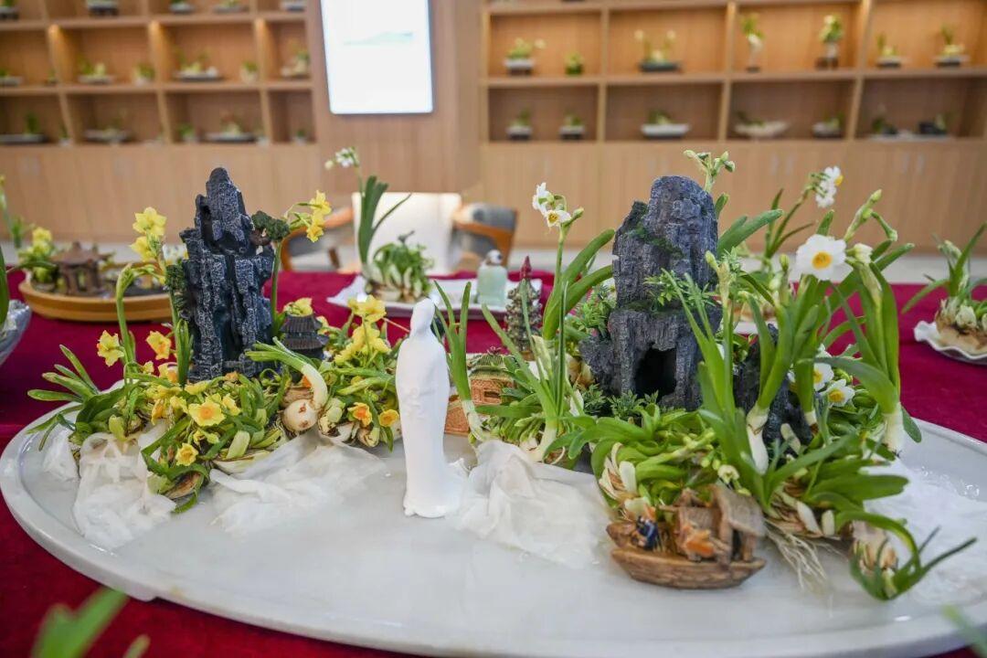展销以平潭水仙花为核心,汇集精品水仙展品与创意雕刻造型,尽显“凌波仙子”的清雅风姿,让市民游客近距离沉浸式感受平潭水仙的独特魅力。