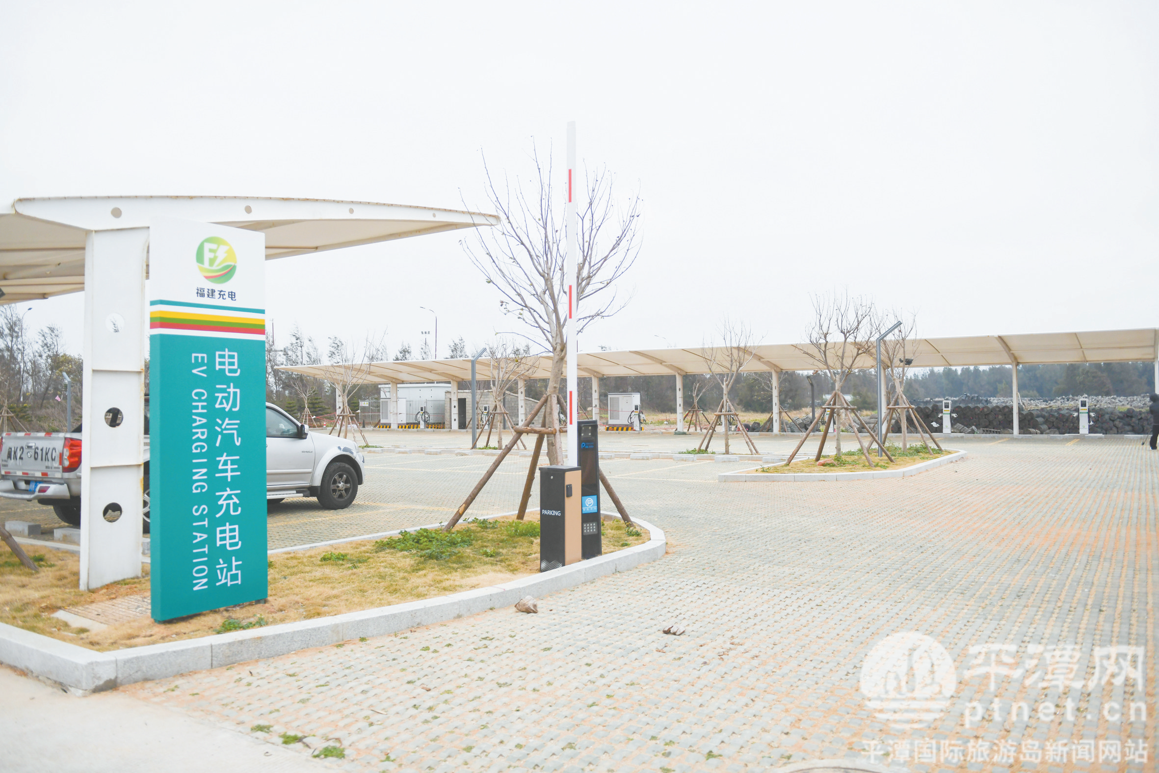 在裕藩村停车场,平潭供电公司工作人员正在查看充电桩设施安装情况,场内的道闸、路灯、管理房等设施齐全,已经具备运营条件。据了解,裕藩村停车场位于流水路北侧,距离裕藩湾沙滩约300米,项目占地面积约2200平方米,投资107万元,规划建设61个停车位,部分为新能源汽车停车位。