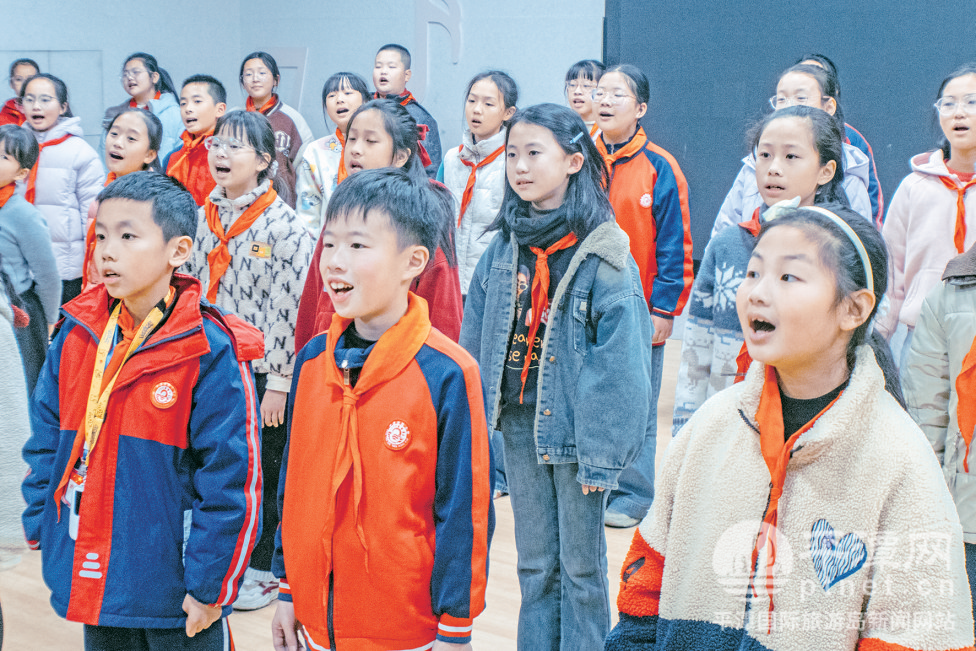 在音乐老师陈婷舒展而富有韵律的指挥下,合唱团的孩子们全然沉浸在歌唱的世界里。在音乐的自然流淌中,他们时而如微风中的稻穗般齐齐侧身摇曳,时而应着节奏清脆击掌……“加入合唱团三年,我不仅学会了乐理,更懂得了如何与同伴和谐共处。”五年级团员陈承予笑着说,“我希望未来能一直唱下去,让音乐成为生命里的一部分。”