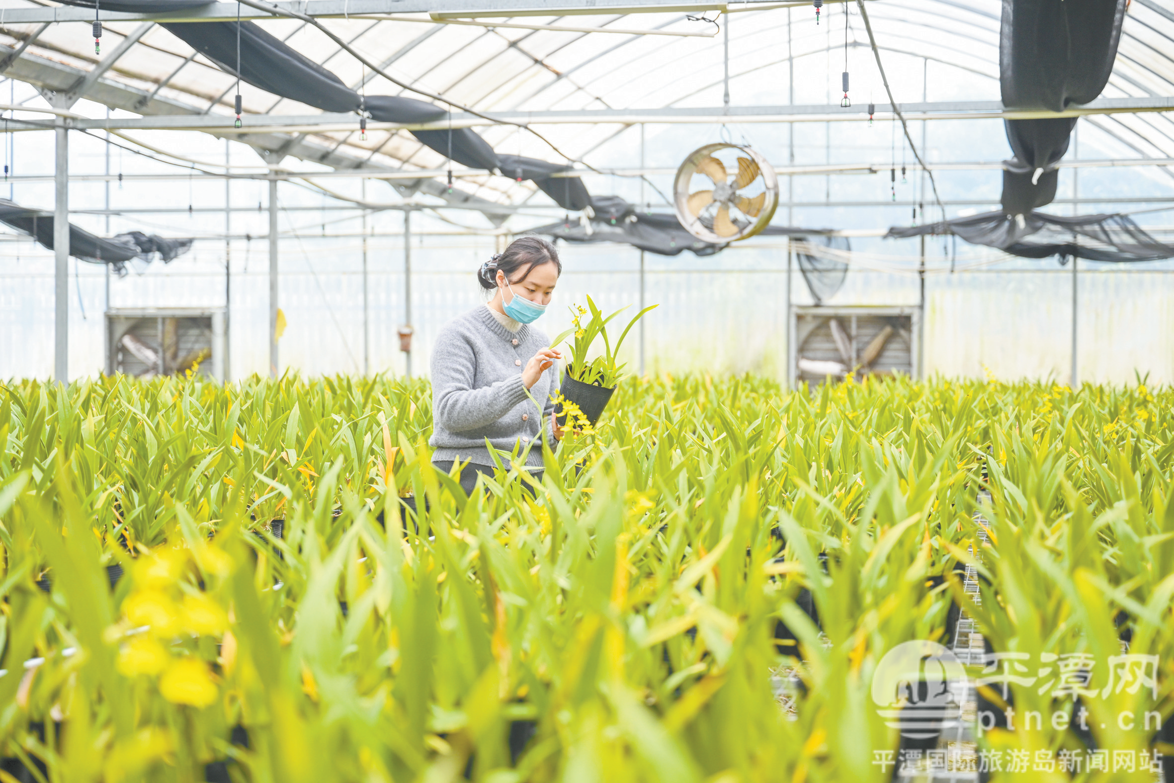 走进平潭一宗闽台农业开发有限公司的智能温室,数万盆花卉整齐排列,俨然一片缤纷花海。清雅的白色蝴蝶兰、明媚的紫色蝴蝶兰相映成趣,明黄色的吉祥兰跃动其间,如精灵起舞。花香幽幽,工作人员正穿梭其中,忙碌地进行年宵花的最后修剪与设计。