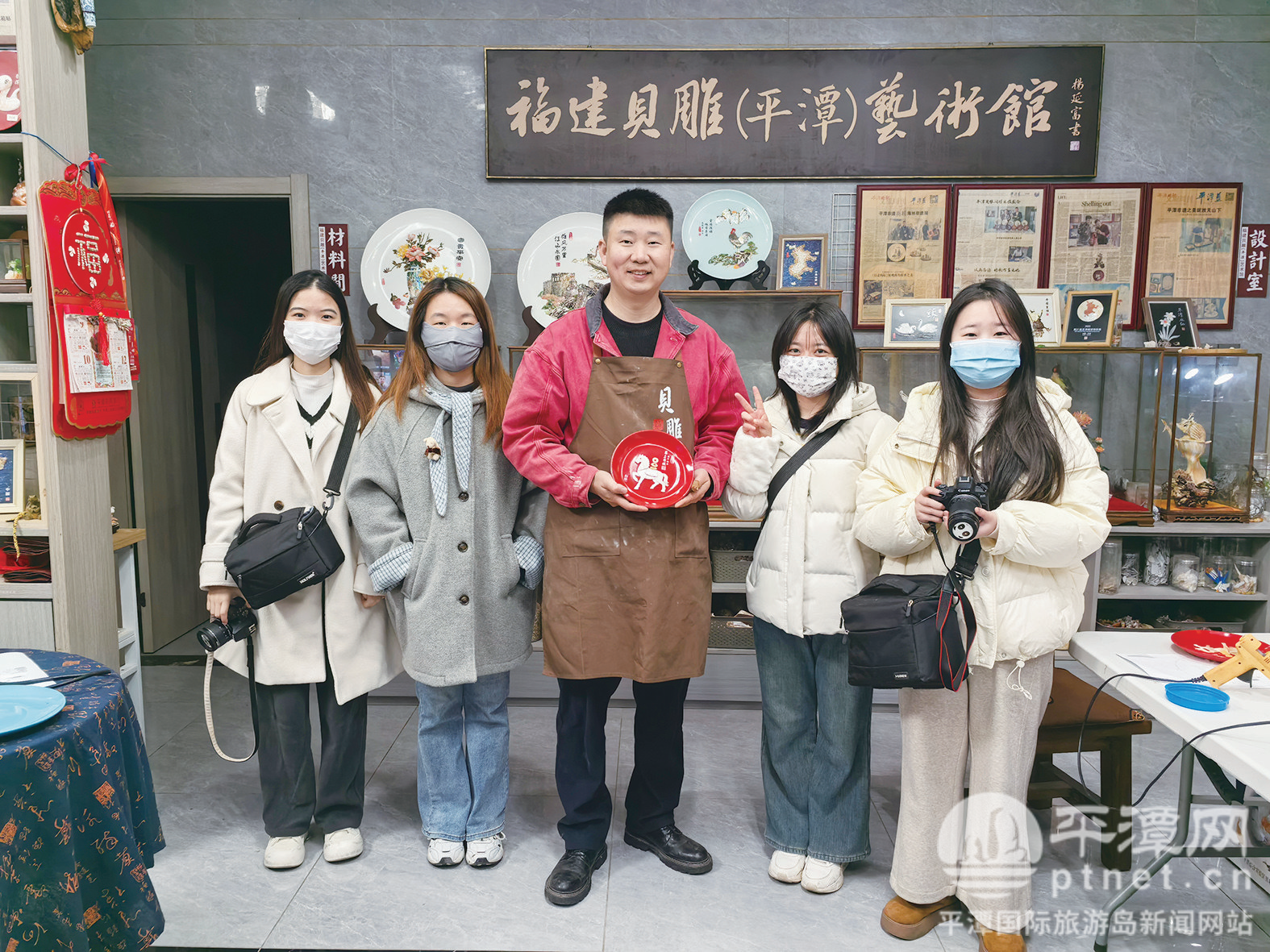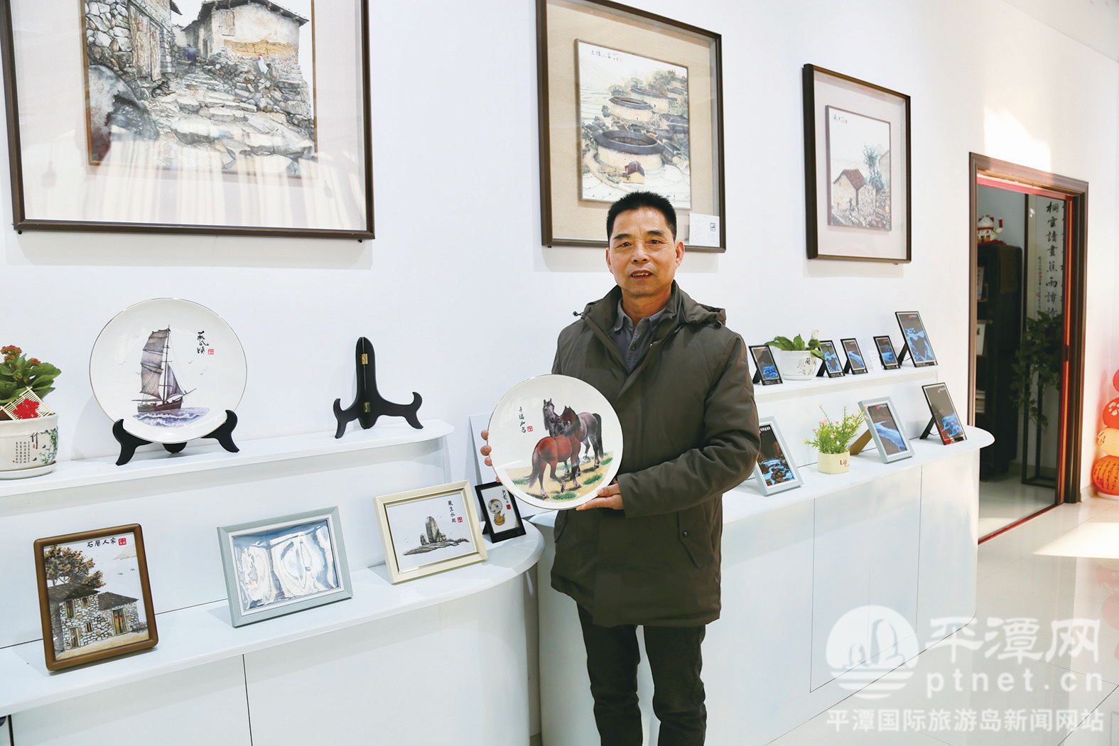 春节前夕,围绕农历马年的创作,正在平潭生长出一片可触可感的生活风景——林美英的剪纸剪出“龙马精神”,周明的贝雕在红盘蓝盘上凝成“马上有钱”,林福平的彩砂则在圆盘中铺展出“幸福加马”。