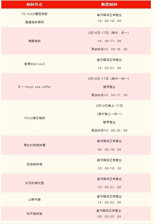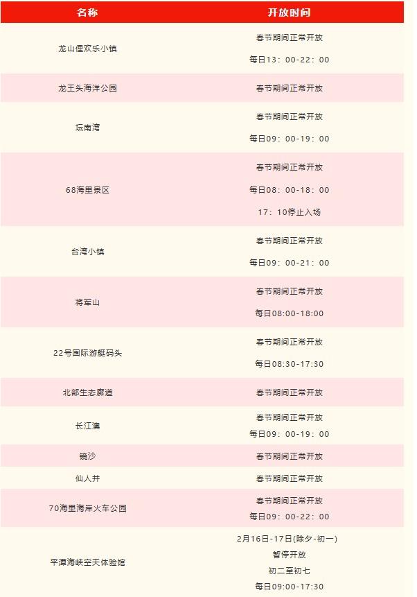 平潭景区、场馆新春开放时间公布