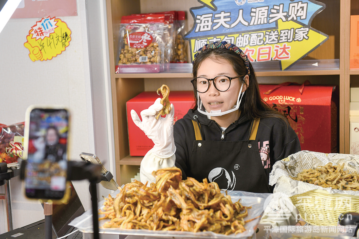 2026-02-10 09:11:54 来源:平潭网 作者:丁云/文 江信恒/摄“叮叮叮……”下午4时许,在海坛中路的一家平潭特产伴手礼店内,手机订单提示音此起彼伏。店长林芳一边核对订单,一边对着镜头介绍产品:“这是今天刚到货的龙头鱼干,地道平潭特产,口感特别好,现在下单立刻打包发货。”