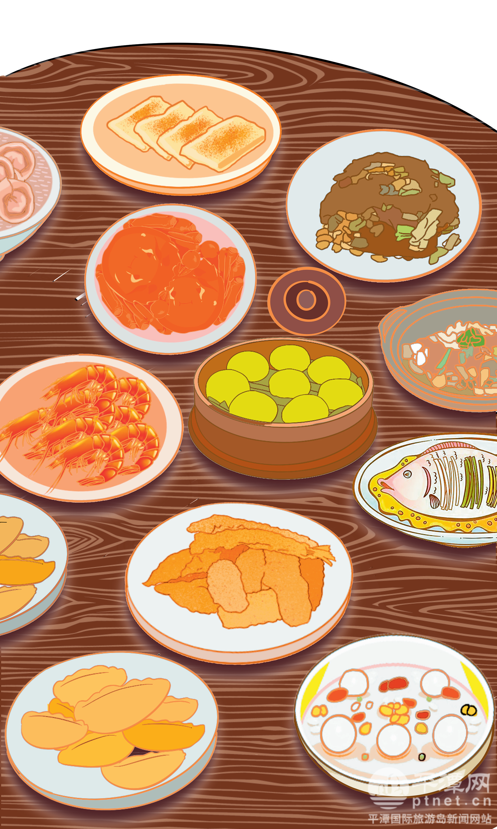 2026-02-13 10:09:24 来源:平潭网 作者:郑也/文 赵曙合/绘“一年做到暗,只想三十盲晡顿”(意为:一年忙到头,只盼除夕年夜饭),这句平潭谚语,道出了年夜饭与团圆的双重欢喜。在平潭,年夜饭的菜肴数量颇有讲究,往往为九道或十一道,取单数以敬祖先,寄寓家庭和美、运势亨通。餐桌上,离不开本地风物的底色——海鲜与地瓜巧妙结合。这一桌饭菜,蕴藏着大海的慷慨馈赠,也维系着海岛人家绵长的家族记忆。