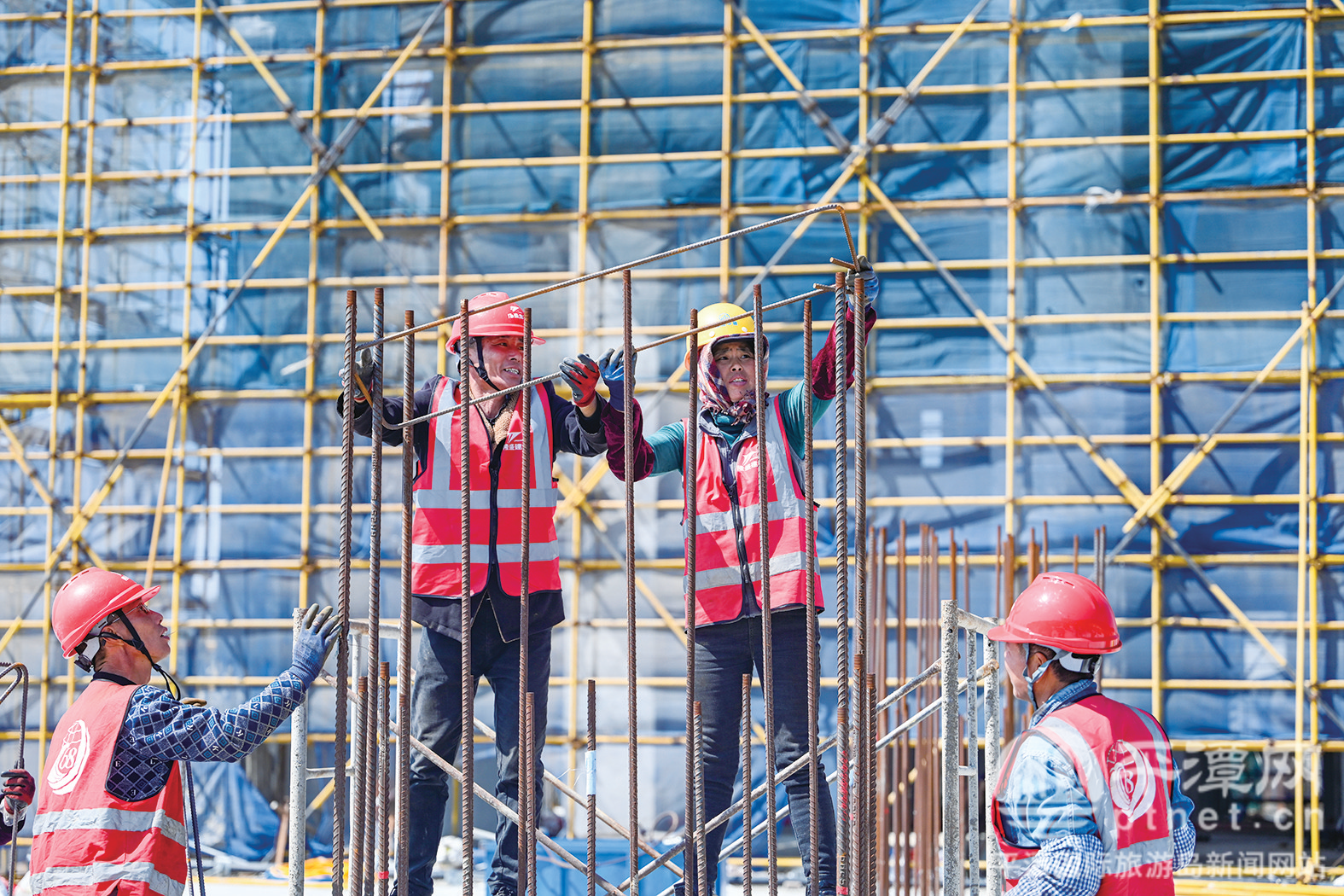 工人在项目现场绑扎钢筋。