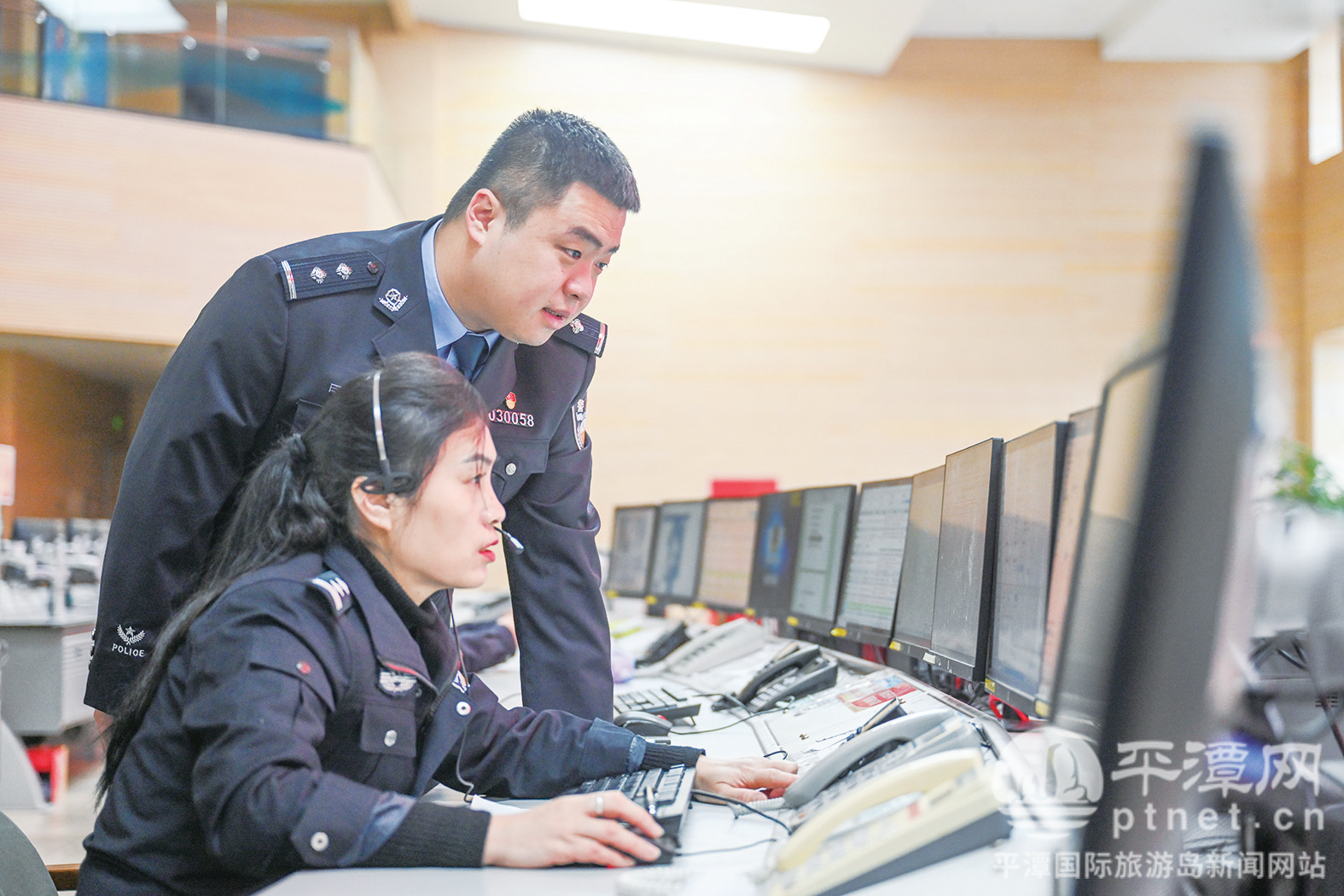 值班民警接听电话。