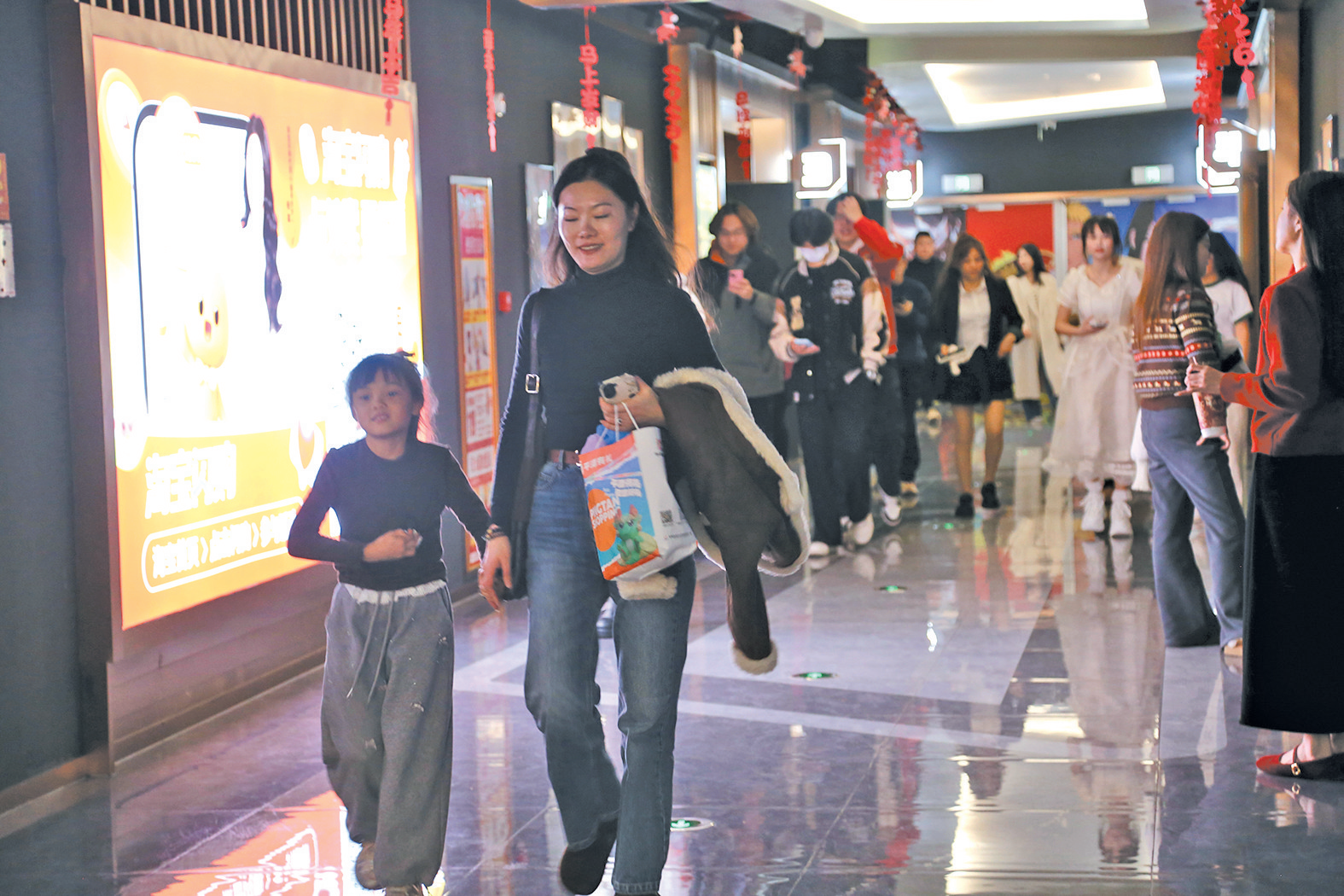 连日来,平潭金逸铂金影城负责人林骞穿梭于各个影厅之间,声音已有些沙哑,但眼里充满干劲。“我们在春节前一周就开始为春节档电影预热做准备,包括铺设海报、装点影院等,力争给观众提供最佳的观影体验。春节假期期间,观众的观影热情很高,过年组团看电影已然成为过新年的打卡项目了。”