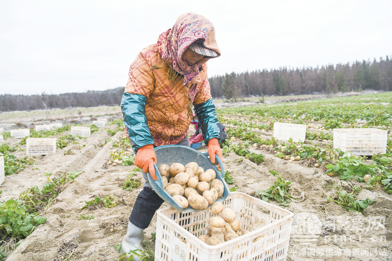 在幸福洋盐碱地上,马铃薯与萝卜迎来双丰收,昔日“不毛之地”变身丰产田。在幸福洋四期,马铃薯收获机来回穿梭,圆润饱满的马铃薯破土而出,工人们紧随其后分拣、装袋,现场一派繁忙。“之前在200亩重度盐碱地试种,产量和普通地块不相上下,今年直接扩大到500亩。”平潭绿绿鑫蔬果农民专业合作社负责人陈成龙介绍,平潭马铃薯外表光滑,市场供不应求,盐碱地成功种出“金疙瘩”。