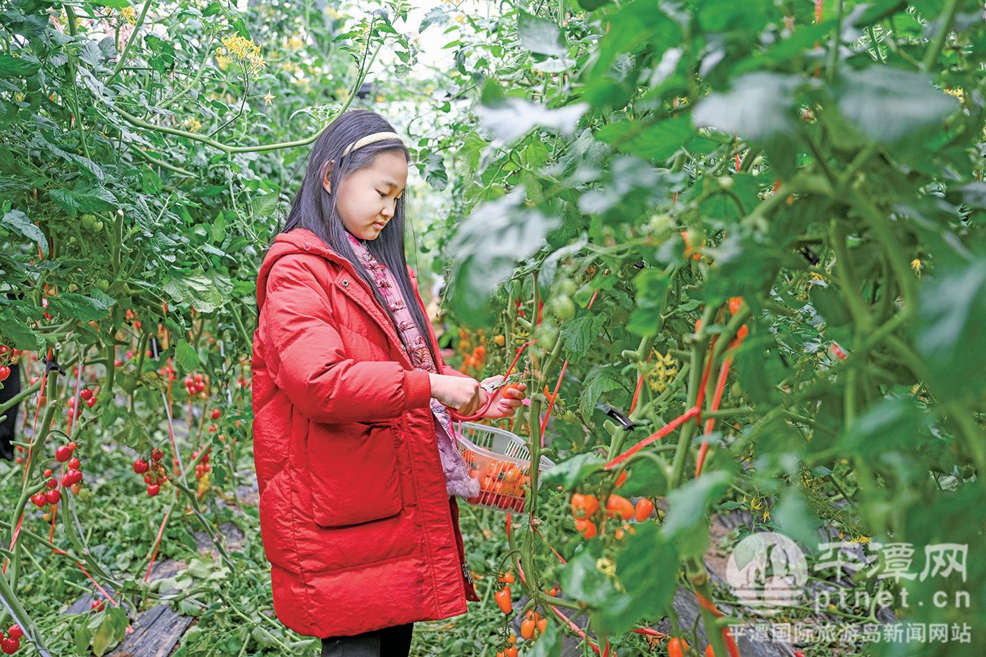 丰收的喜悦延伸至当盛村。台盛生态采摘园内,红彤彤的小番茄挂满枝头,吸引不少市民游客前来采摘。“周末带孩子来这里,既能亲近自然,又能吃到新鲜果蔬,特别惬意。”市民李女士边挑选边说。她还特意选购了几盒礼盒装水果,打算送给外地亲友。
