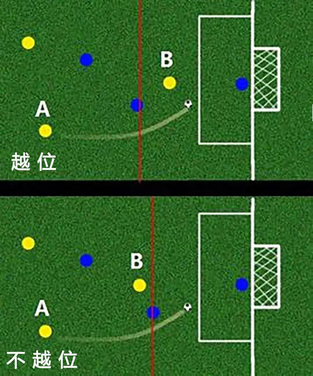 足球比赛中,对进攻方向前传球时接球运动员允许站到的位置有着严格限制。当球员向对方半场传球的一瞬间,接球人的身体(除手臂外)比球和倒数第二名防守队员更靠近对方球门线,则处于越位位置。若此时接球或干扰比赛,判罚越位。