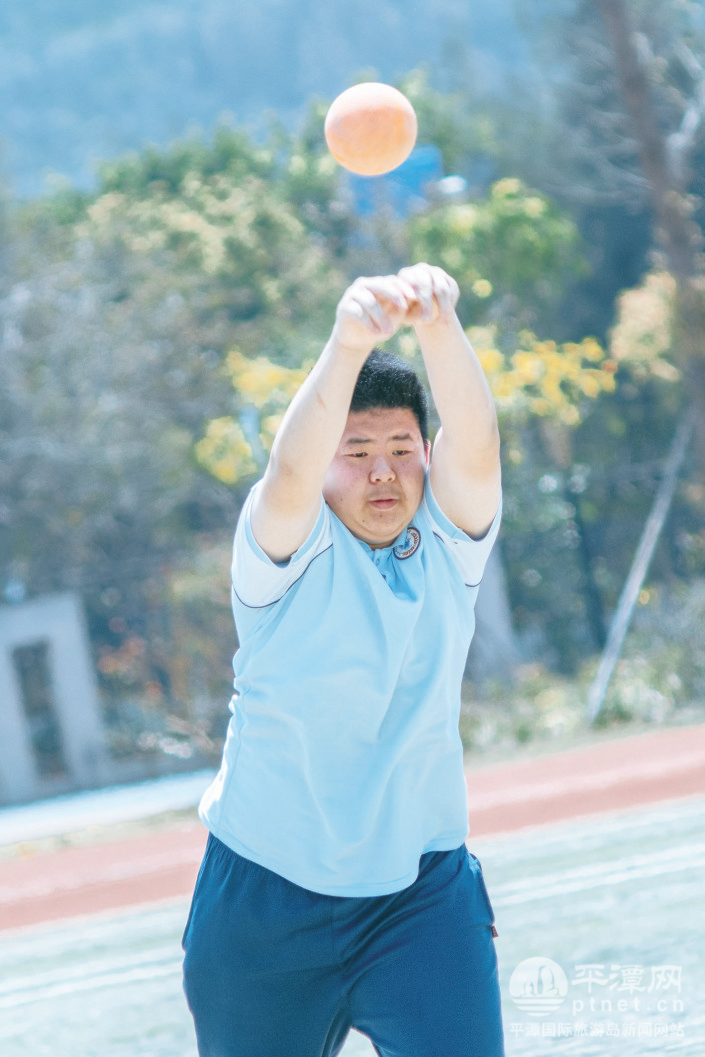 九年(4)班学生林泊新的备考轨迹,常常在室外与室内之间切换。他选择的体育中考项目是1000米中长跑、双手头上前掷实心球和40秒排球对墙壁垫球。为了提升手部力量、夯实垫球基础,他不仅在家坚持跳绳练习,还主动跟随啦啦操社团的老师进行专业训练;课后,他也会独自来到操场跑步,让身体在奔跑中彻底放松,同时提升耐力水平。