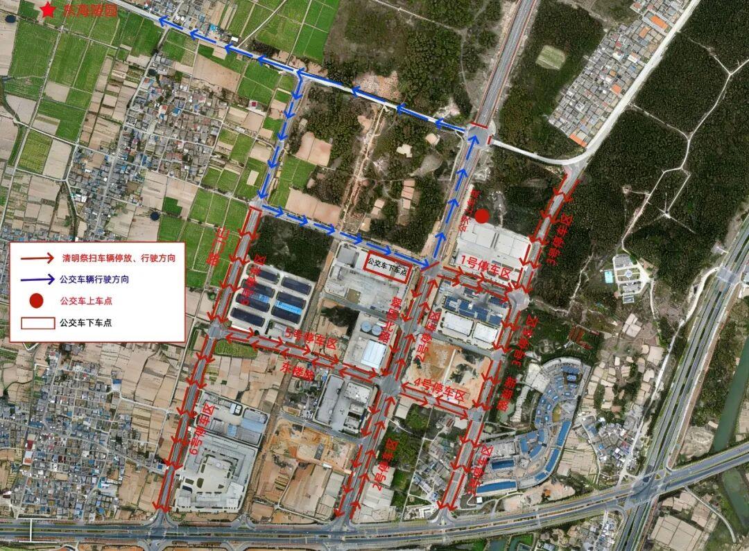 (东海陵园祭扫停车区及公交接驳点示意图)