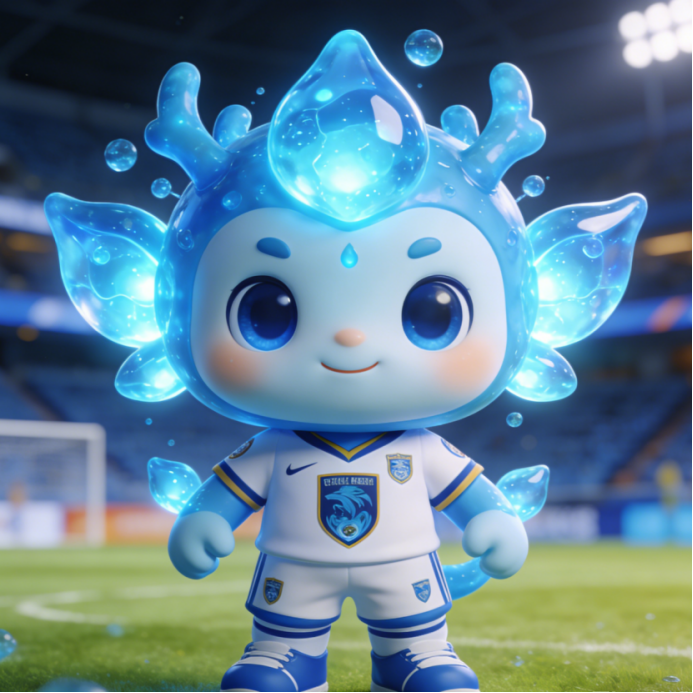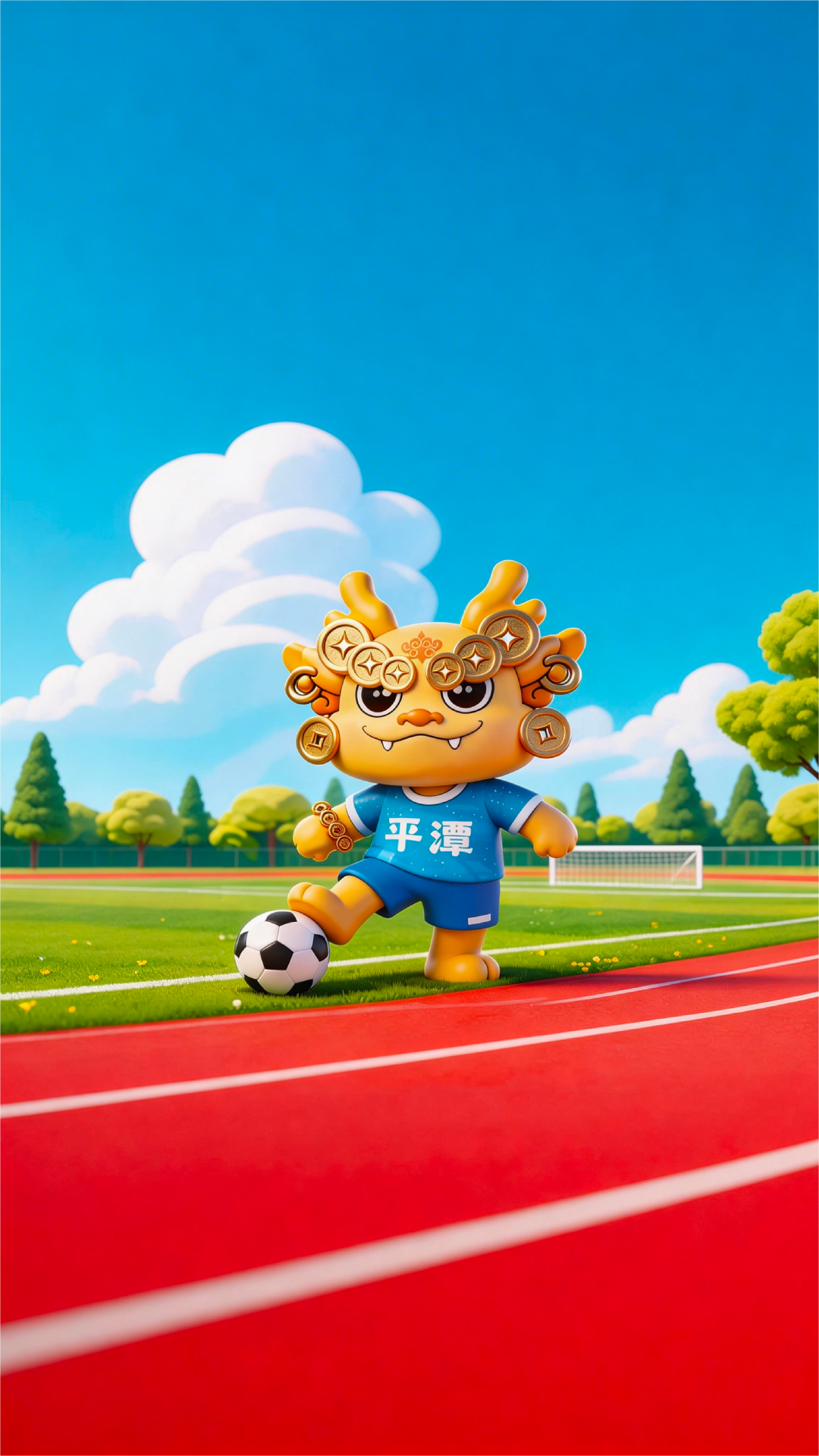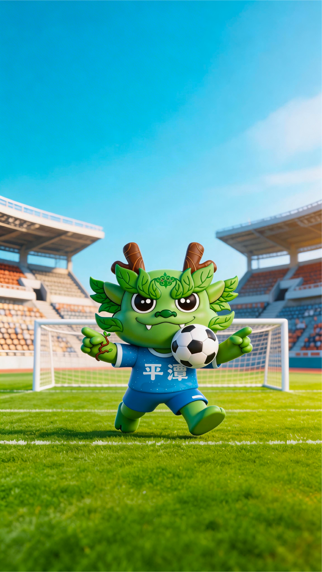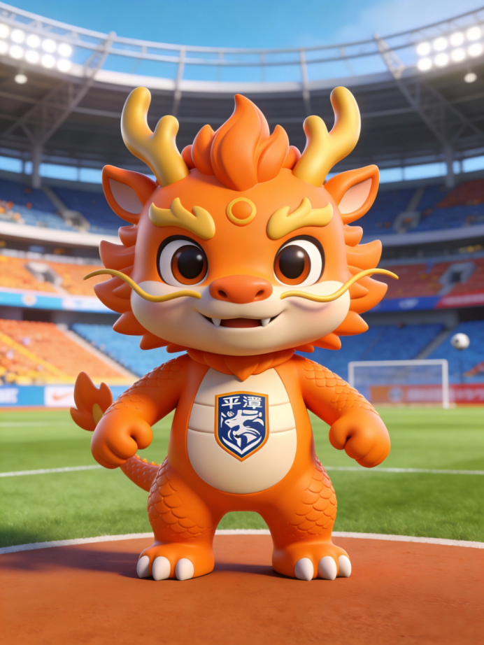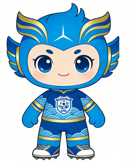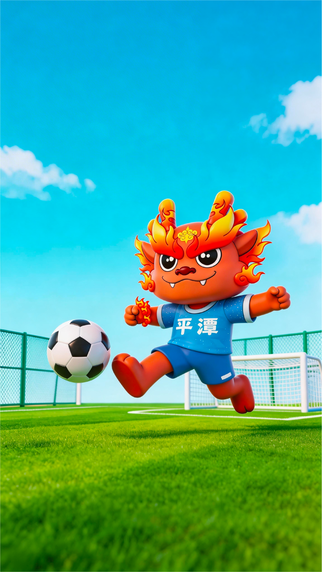 身着“蓝眼泪”球衣与蓝色球裤,蓝青渐变呼应平潭的碧海蓝天,星星点点代表着平潭特色的“蓝眼泪”,球衣上“平潭”二字是身份的鲜明烙印;头顶橙红渐变的麒麟角与祥云耳翼,既还原麒麟瑞兽的灵动形态,又象征着赛场之上的热血锋芒;青绿色的身躯则如平潭的青山礁石,历经海风海浪的打磨,藏着坚韧。