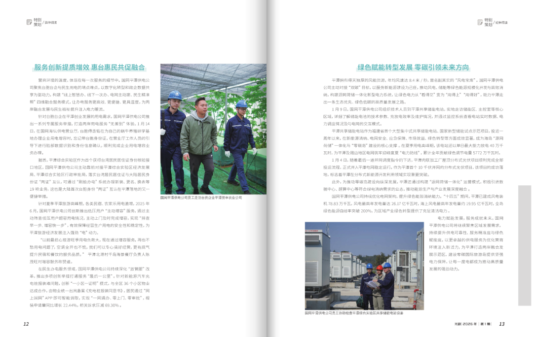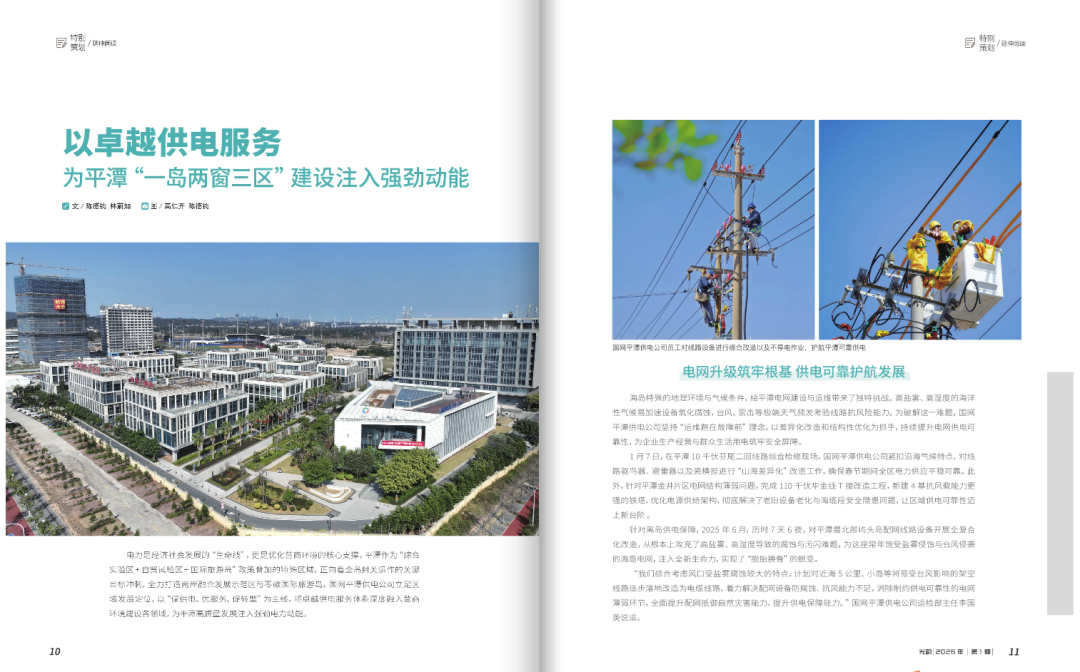 近日,《光韵杂志》2026年第1期整版报道国网平潭供电公司《以卓越供电服务 为平潭“一岛两窗三区”建设注入强劲动能》。