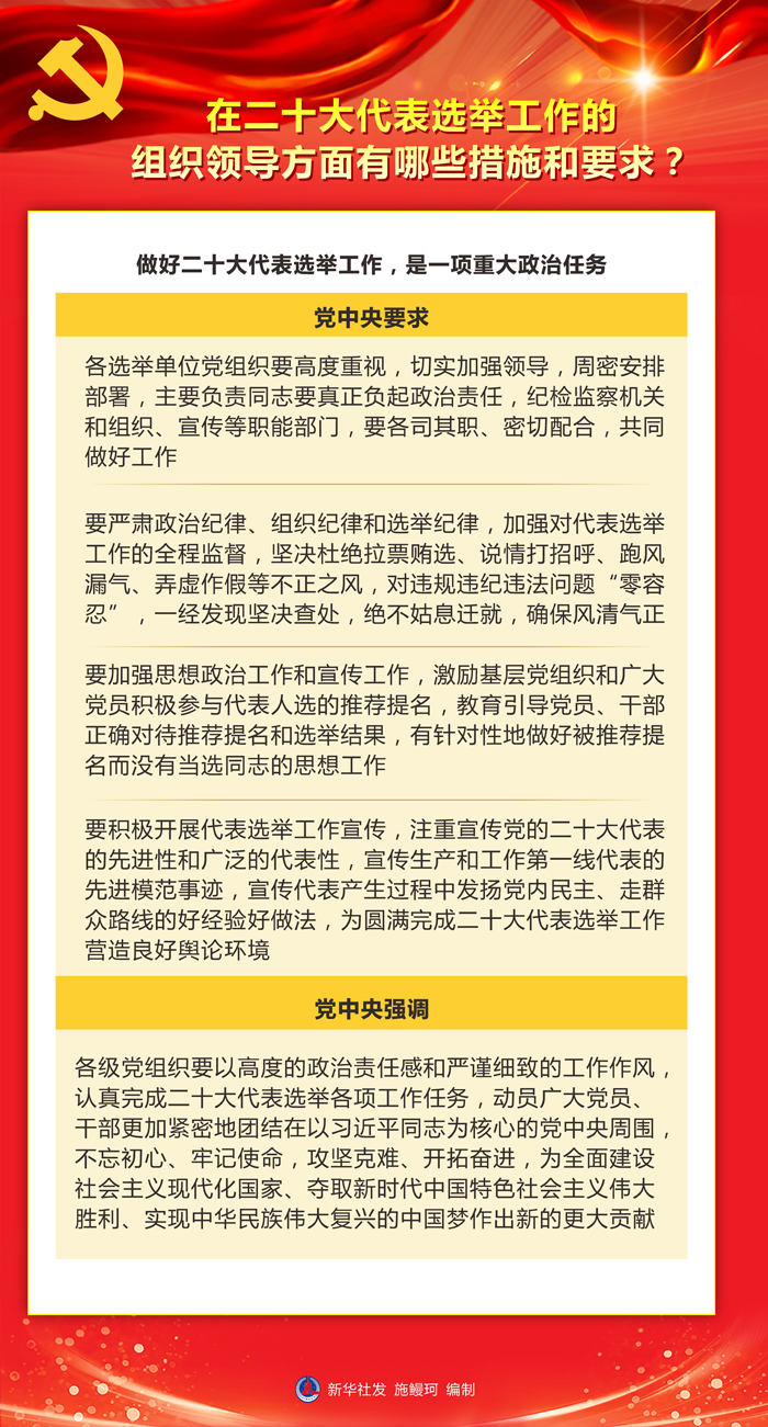 问:最后,请您谈谈在二十大代表选举工作的组织领导方面有哪些措施和要求?