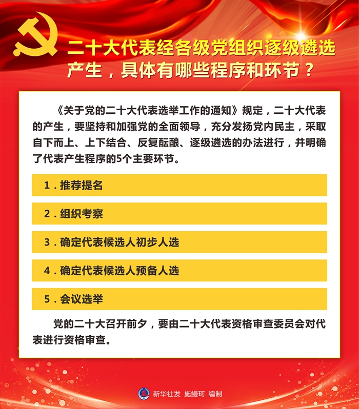 问:您前面谈到,二十大代表要严密产生程序,经各级党组织逐级遴选产生,请问具体有哪些程序和环节?