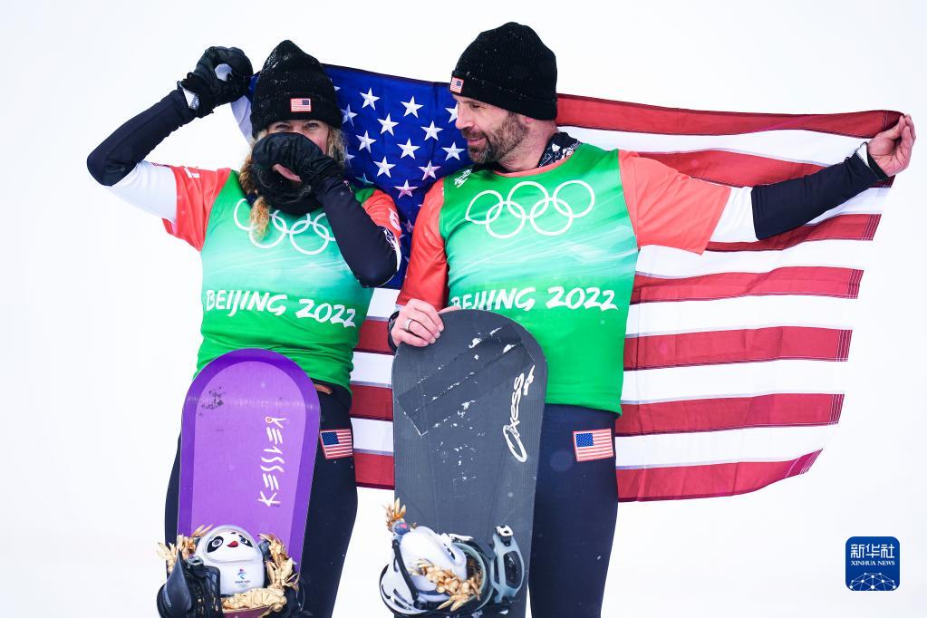 当日,北京2022年冬奥会单板滑雪障碍追逐混合团体比赛在张家口云顶滑雪公园举行,美国选手尼克·鲍姆加特纳和琳赛·雅各贝利斯组成的美国一队获得冠军。