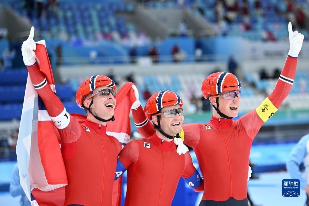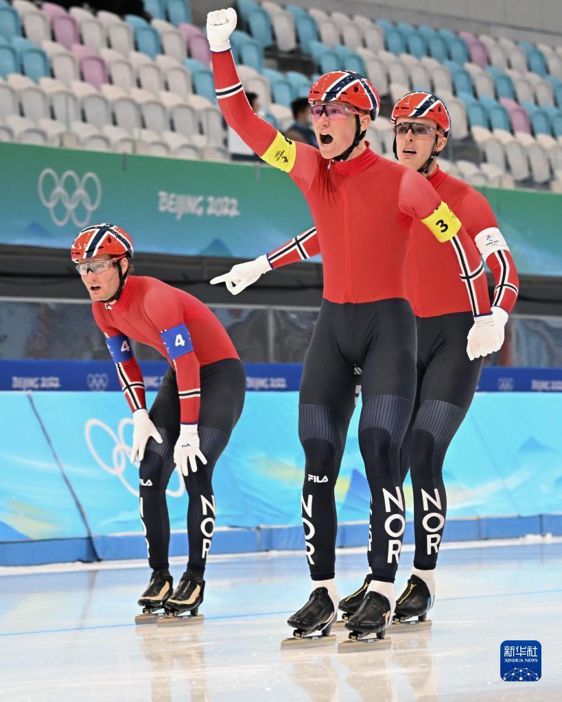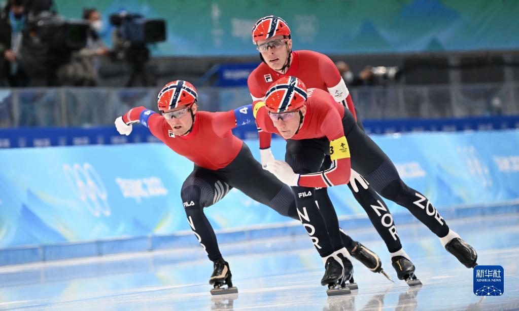 当日,北京2022年冬奥会速度滑冰男子团体追逐决赛在国家速滑馆“冰丝带”举行,挪威队夺得冠军。