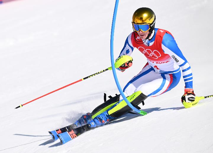 2月16日,法国选手克莱芒·诺埃尔在高山滑雪男子回转项目比赛中。新华社记者连振摄