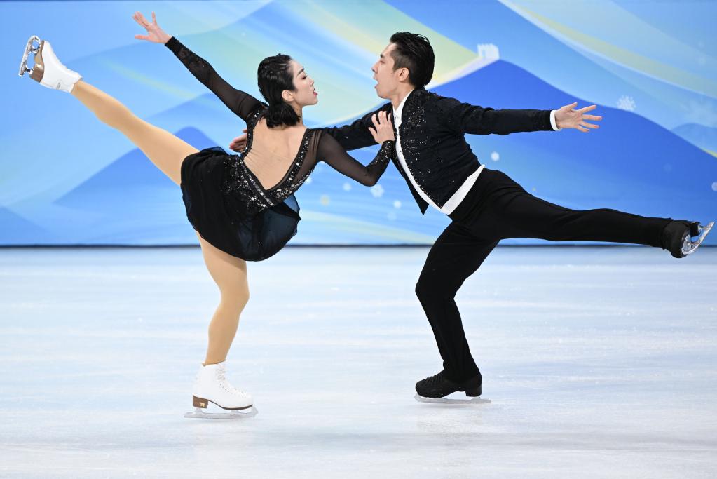 2月18日,中国选手隋文静(左)/韩聪在北京冬奥会花样滑冰双人滑短节目比赛中。新华社记者鞠焕宗摄