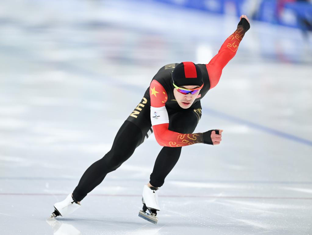 2月18日,中国选手宁忠岩在北京冬奥会速度滑冰男子1000米比赛中。新华社记者武巍摄