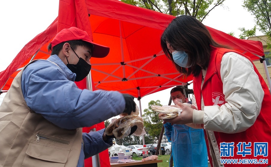 米拉迪力为一线抗疫人员派送午餐。新华社记者 郭杰文 摄