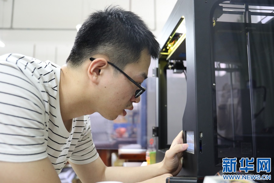刘鑫在操作机器制作零件。新华网 王中庆 摄