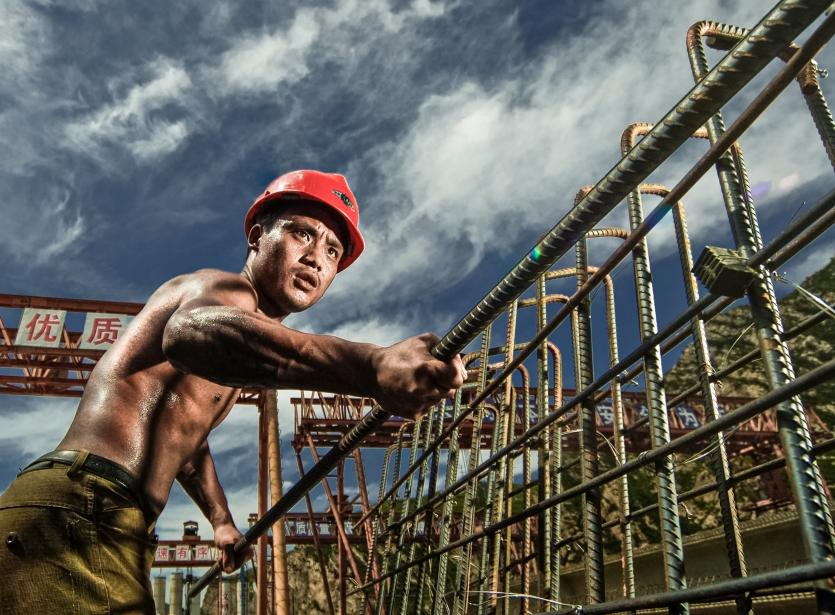 无论烈日炎炎,还是暴风骤雨,工地上这些建设者永远有着钢筋铁骨般的力气。