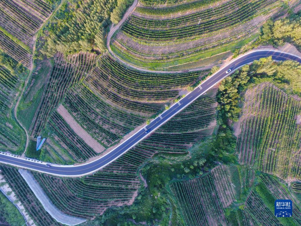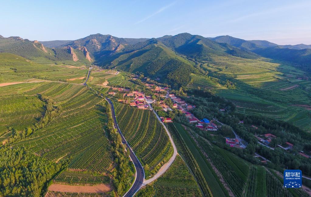 这是2021年8月30日拍摄的内蒙古赤峰市喀喇沁旗马鞍山村风光(无人机照片)。新华社记者 贝赫 摄