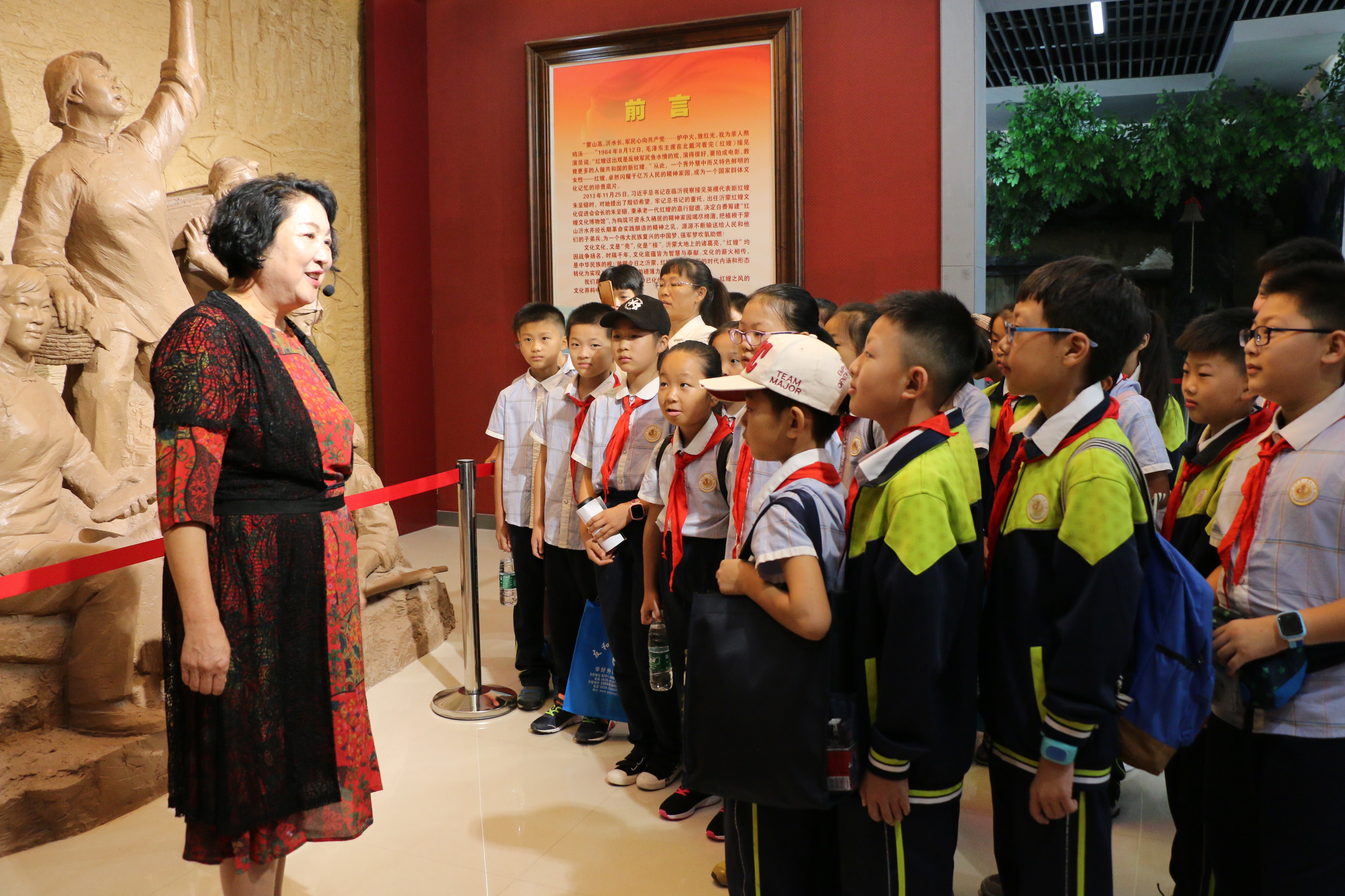 朱呈镕在红嫂文化博物馆接待参观的小学生。(受访者供图)