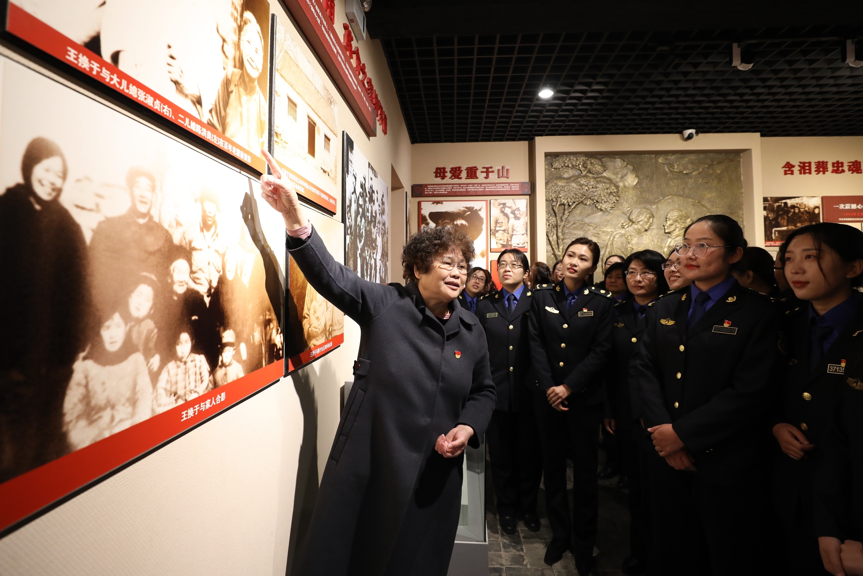 “红嫂后人”于爱梅向参观者讲述沂蒙红嫂的故事。(沂南县委宣传部供图)