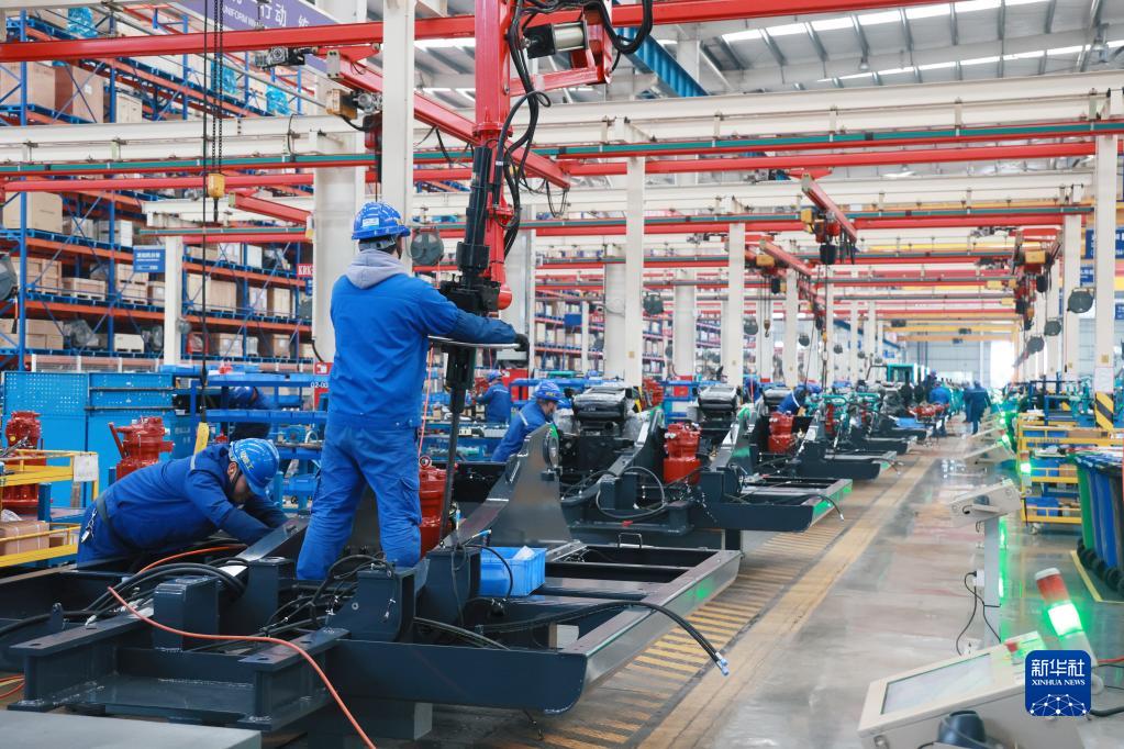 2月7日,湖南山河智能装备股份有限公司的工作人员在车间调试设备。新华社发(受访者供图)