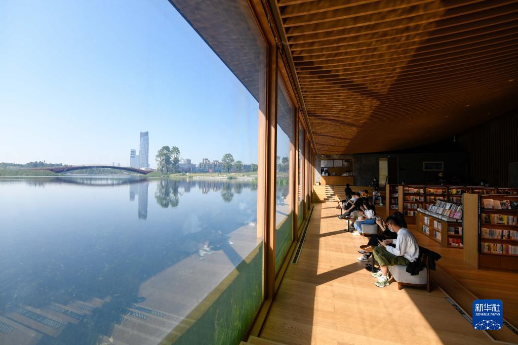 读者在成都兴隆湖畔的中信书店内读书(4月20日摄)。新华社记者 胥冰洁 摄