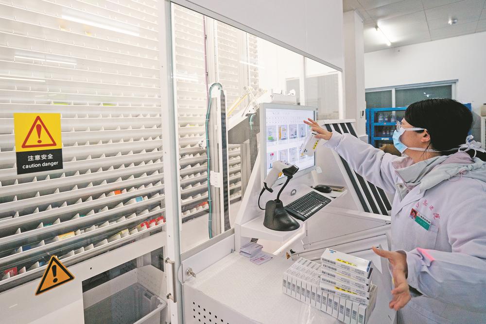 在沙县区总医院药房,自动化取药设备正在准备药品。