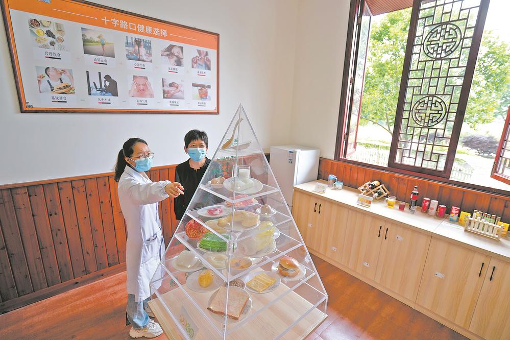 ▲ 在沙县区总医院高桥分院治未病中心,医生在给群众介绍膳食平衡的知识。