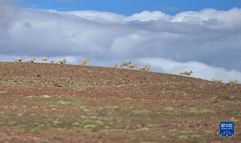 这是在可可西里卓乃湖区域拍摄的藏羚羊(2020年7月7日摄)。新华社记者 张龙 摄