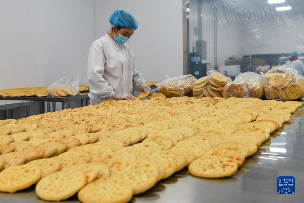 在新疆霍尔果斯馕产业园,工作人员在分拣刚做好的馕(2021年2月5日摄)。新华社记者 丁磊 摄