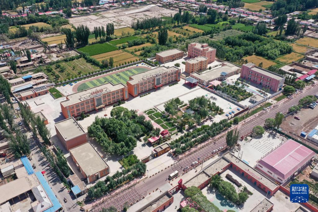 这是新疆喀什地区疏附县托克扎克镇中心小学(2022年6月10日摄,无人机照片)。新华社记者 丁磊 摄