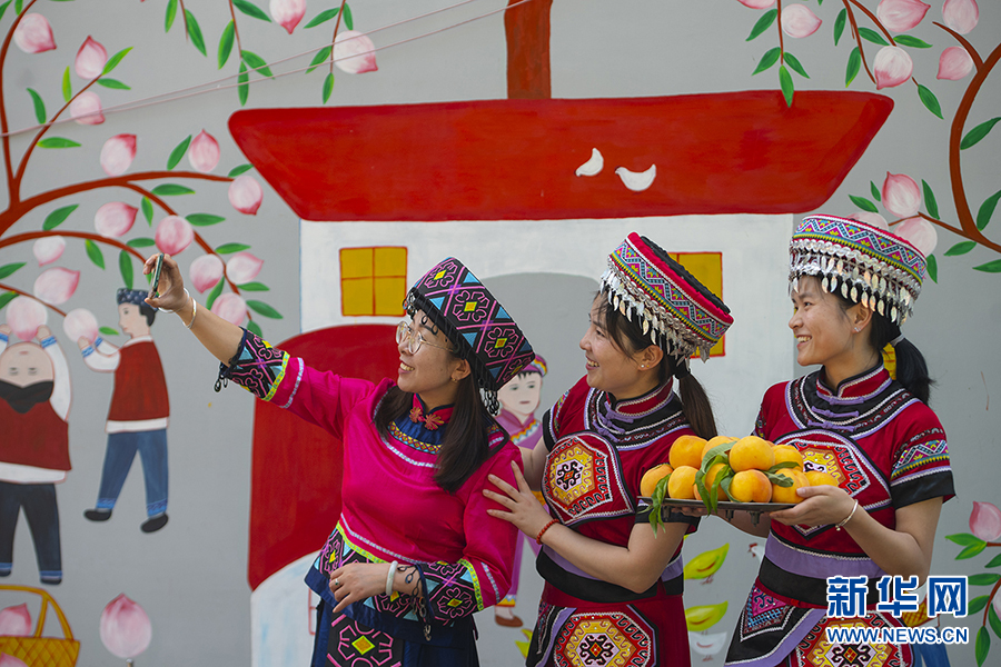 在重庆市万州区恒合土家族乡凤安社区,当地返乡青年正在通过直播带货,推介当地近期丰收的黄桃。新华网发(冉孟军 摄)