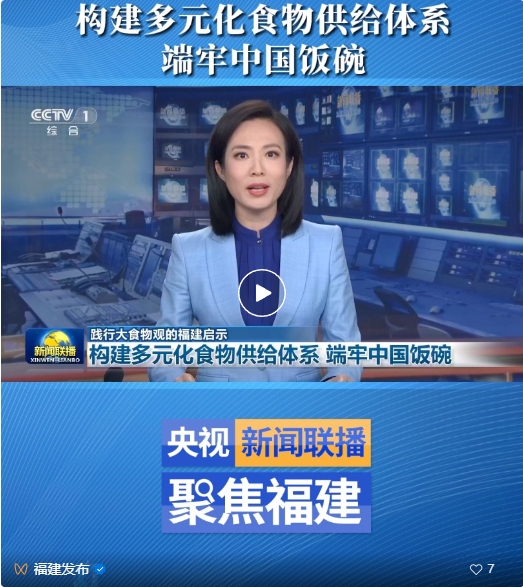 5月14日,总台央视《新闻联播》播出《践行大食物观的福建启示 构建多元化食物供给体系 端牢中国饭碗》,关注福建食物供给丰富多元,展现大食物观的实践力量。